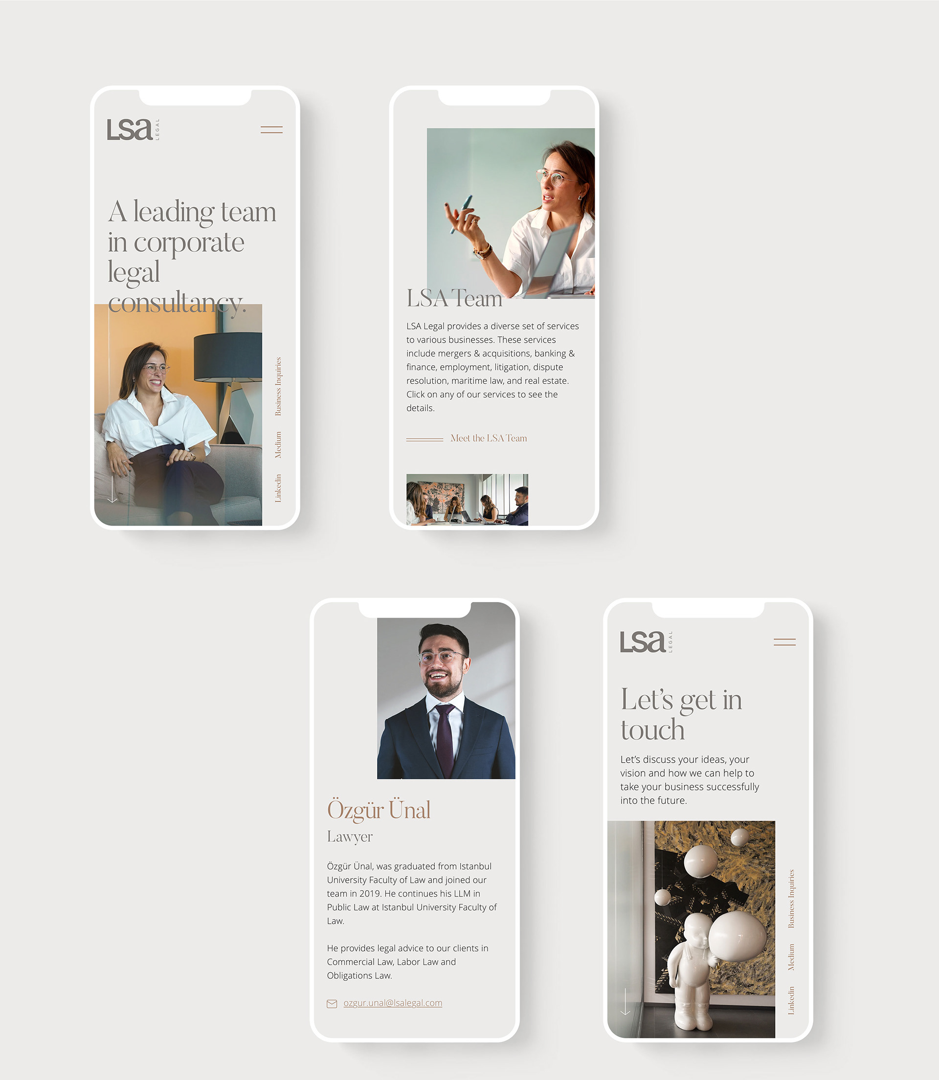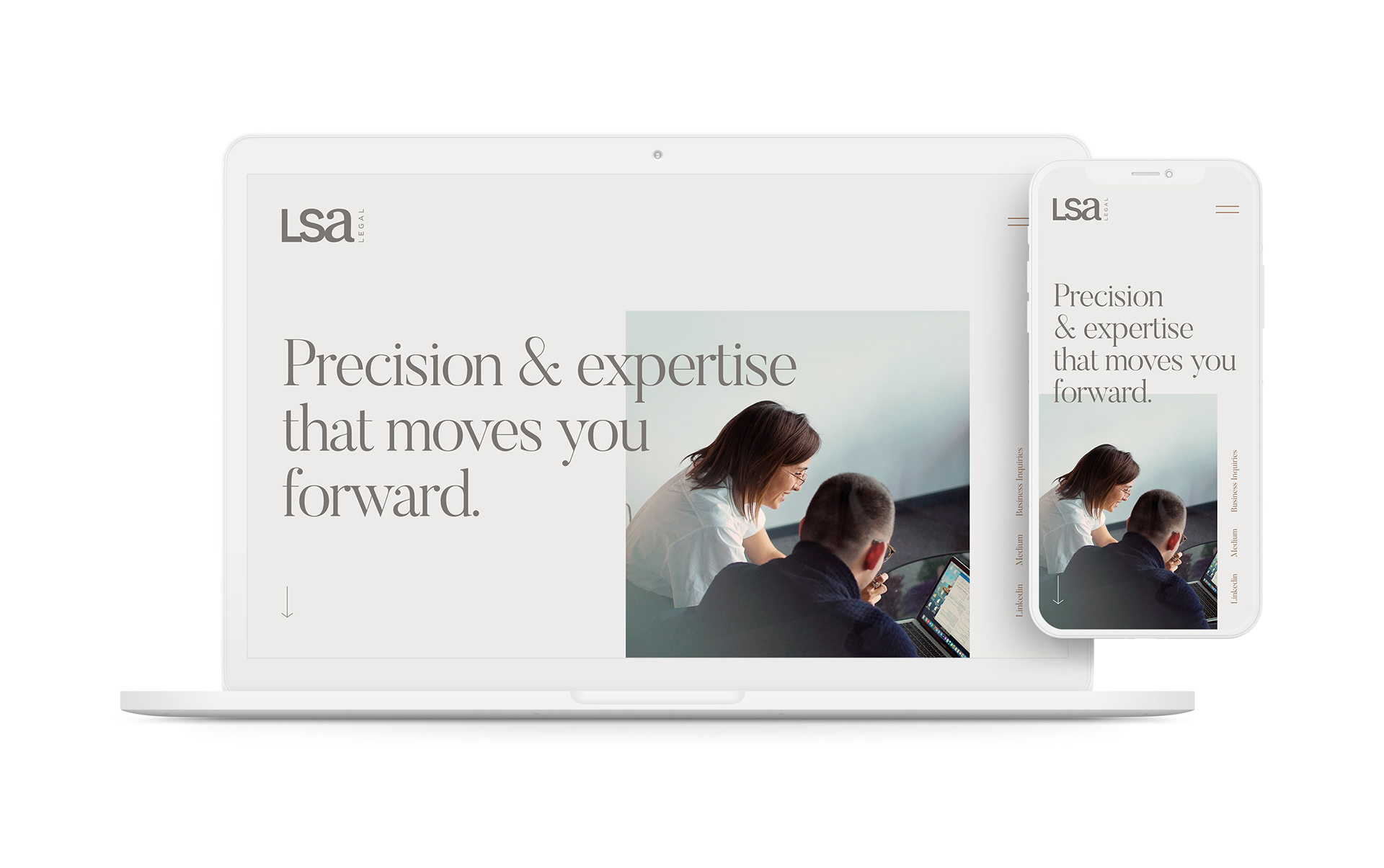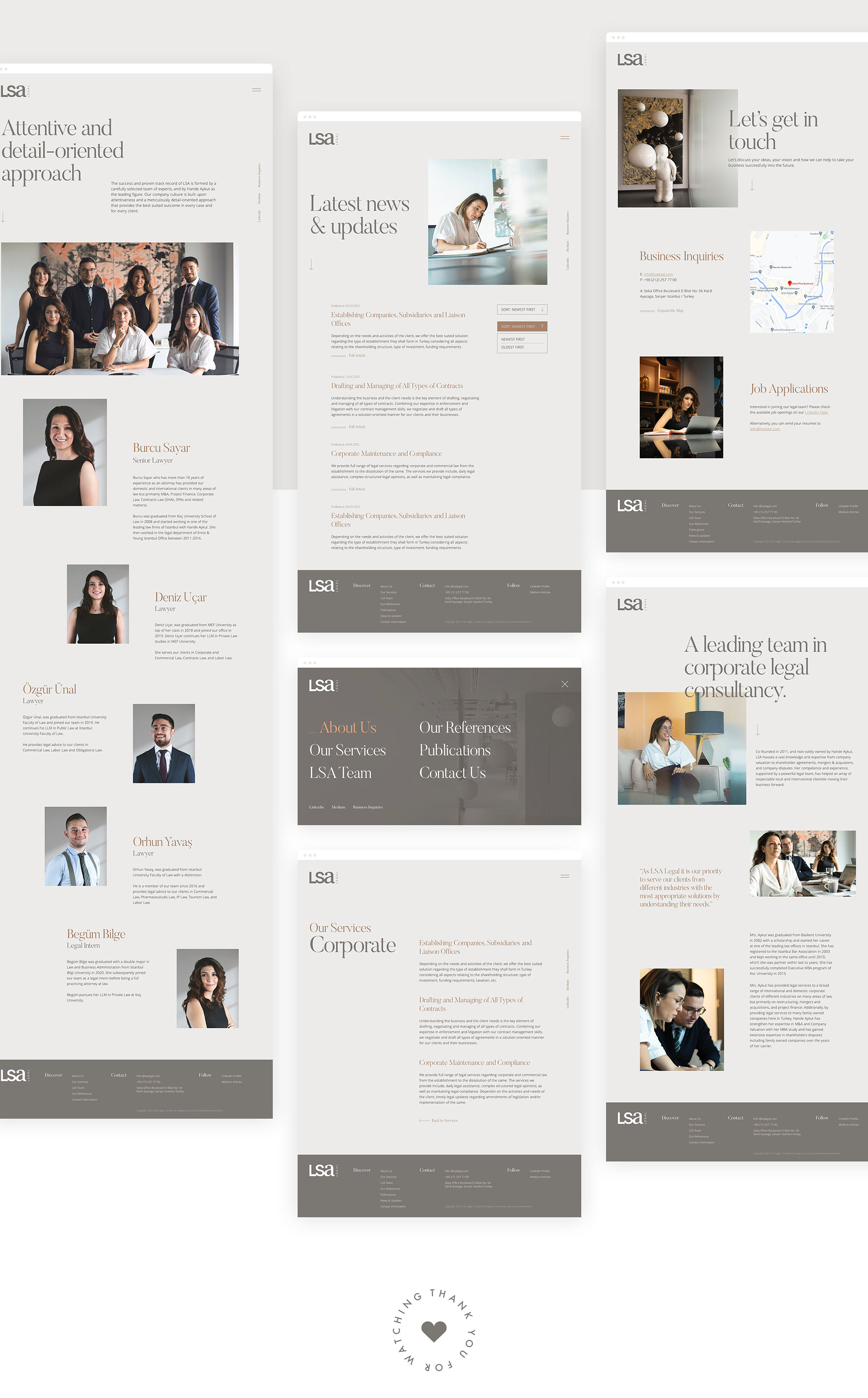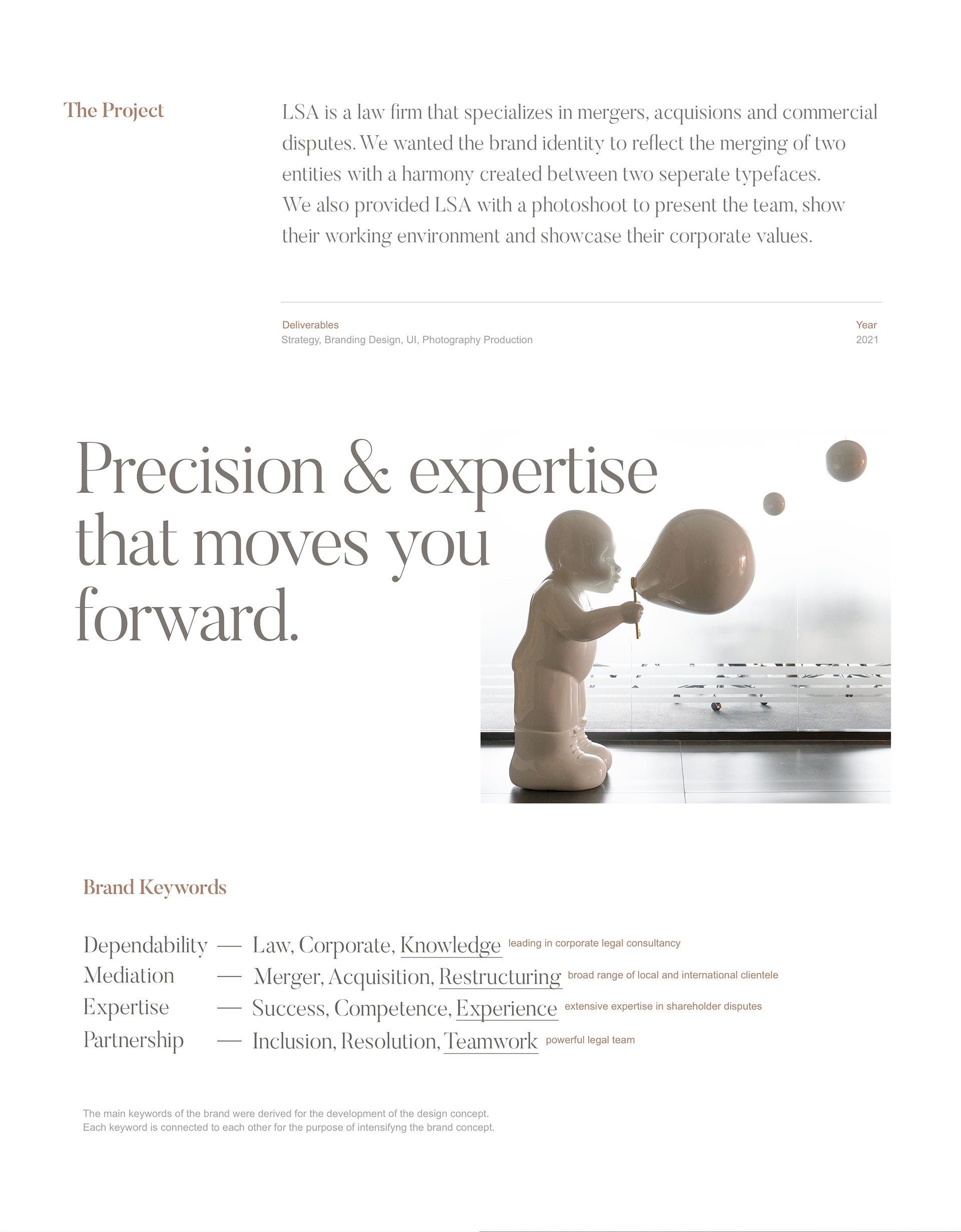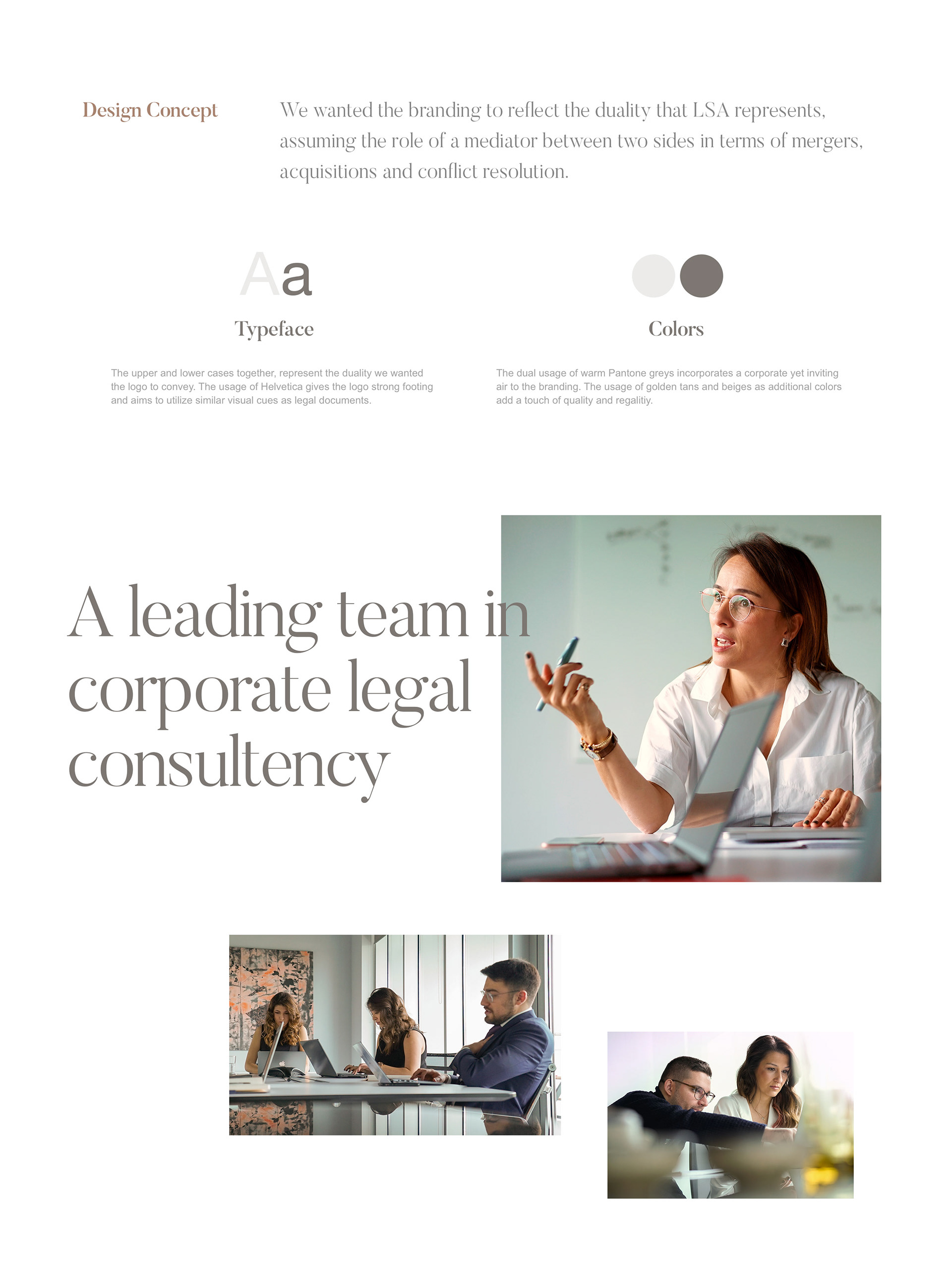 LSA is a law firm that specializes in mergers, acquisions and commercial disputes. We wanted the brand identity to reflect the merging of two entities with a harmony created between two seperate typefaces. We also provided LSA with a photoshoot to present the team, show their working environment and showcase their corporate values.