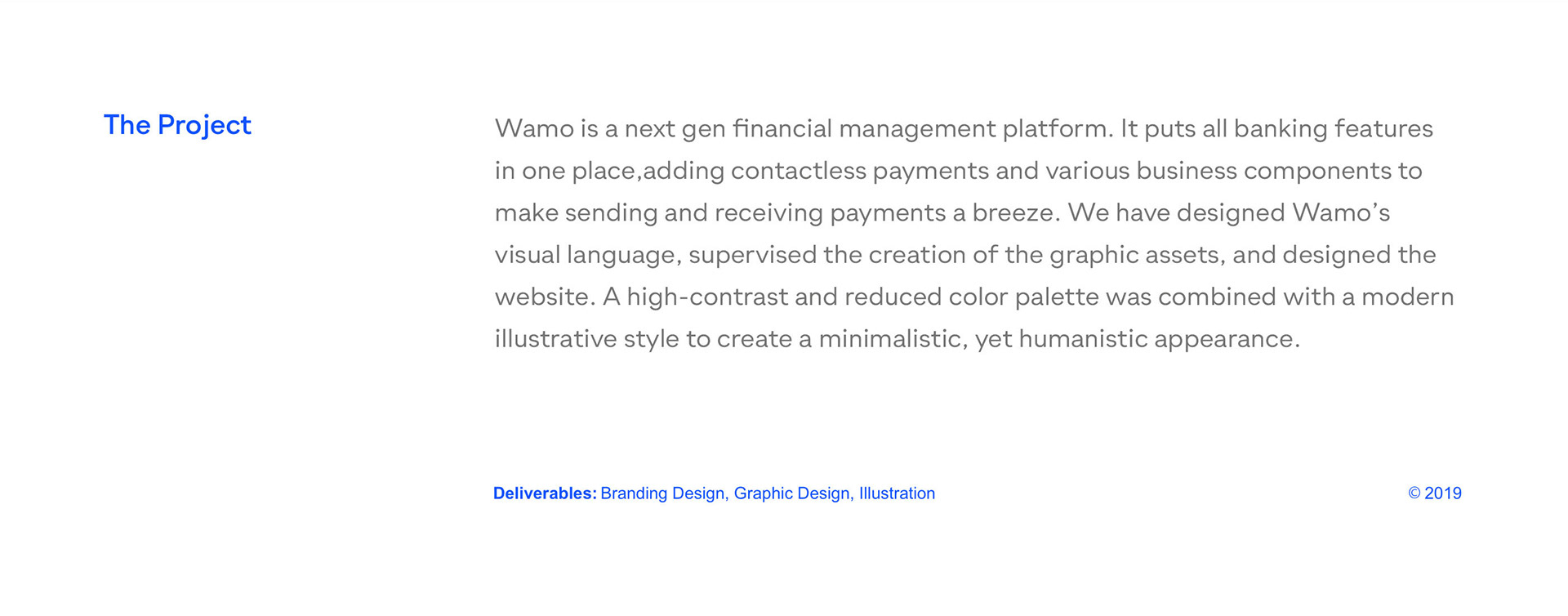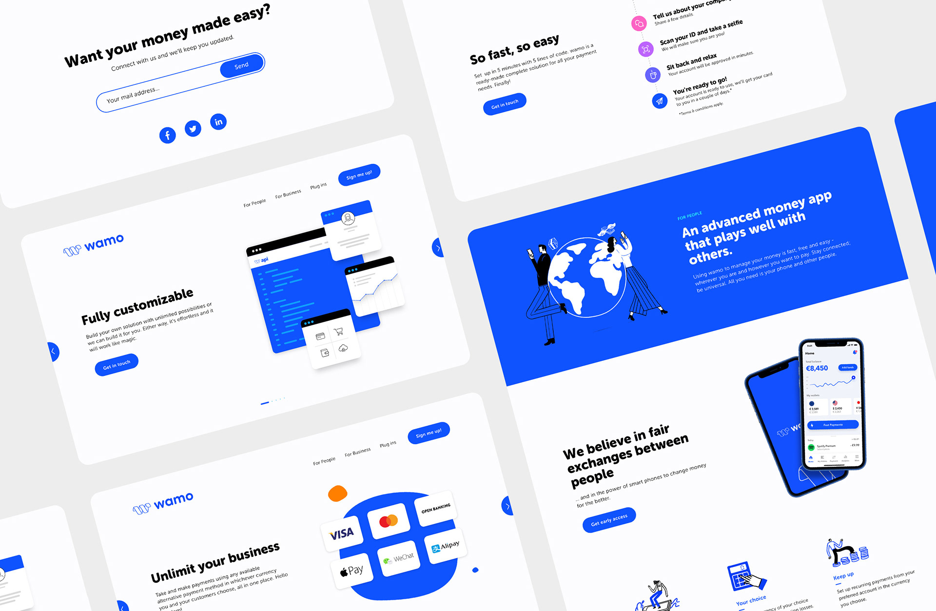 Wamo is a next gen financial management platform. It puts all banking features in one place,adding contactless payments and various business components to make sending and receiving payments a breeze. We have designed Wamo’s visual language, supervised t…